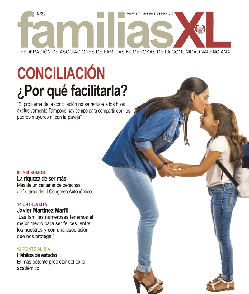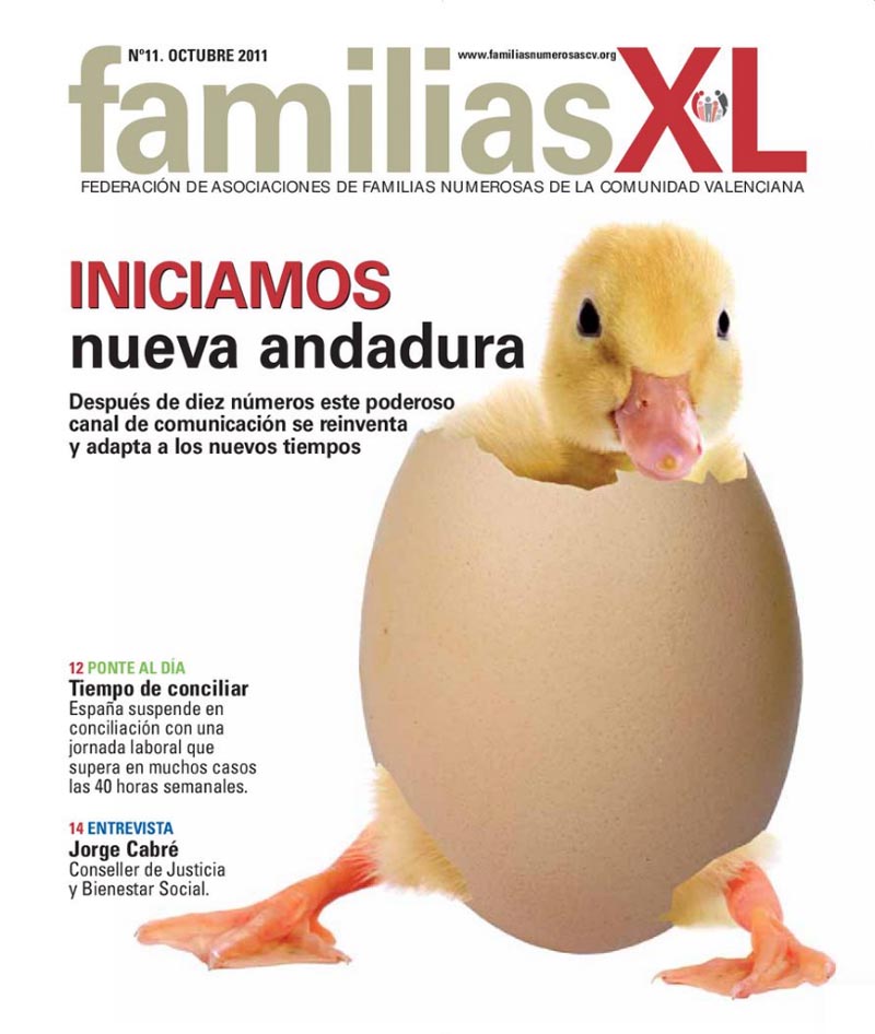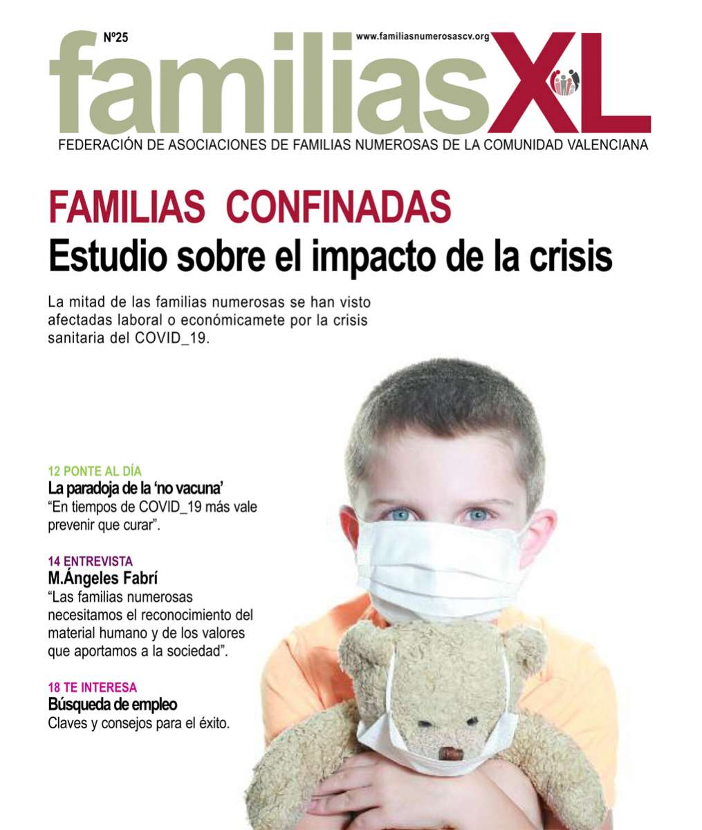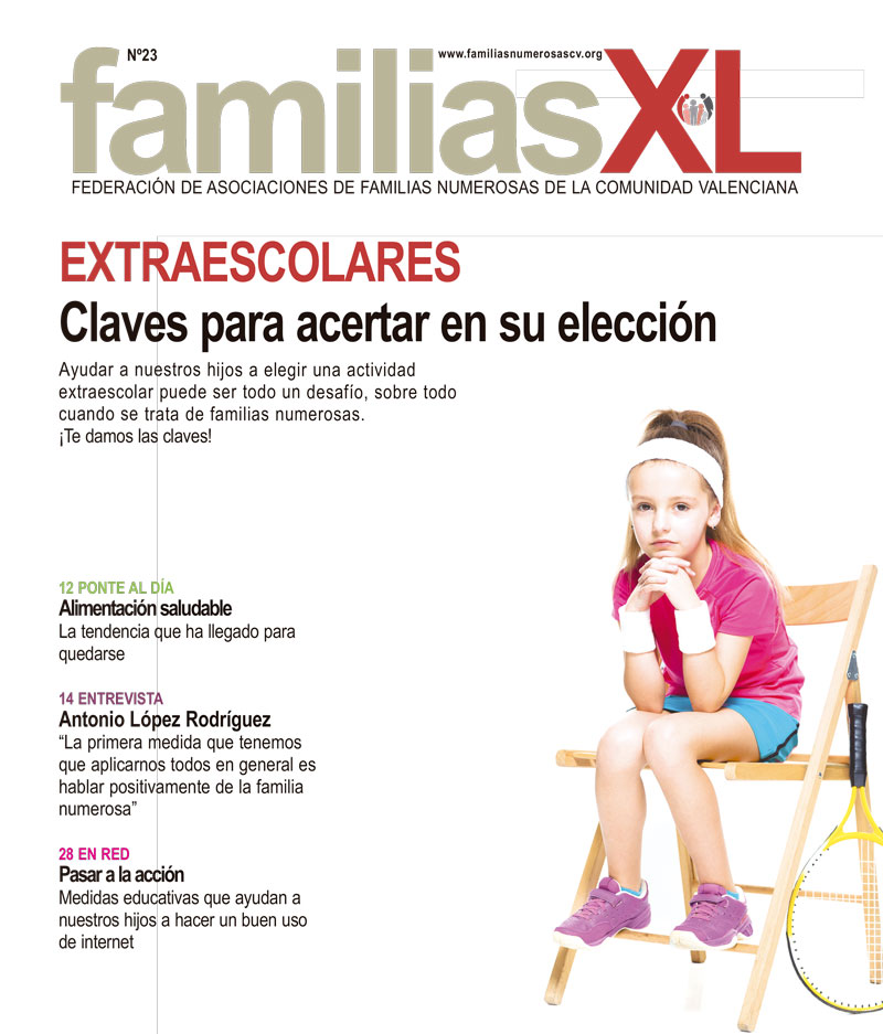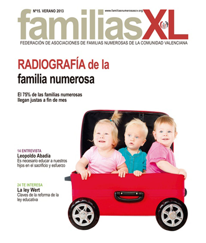 La Revista «familias XL» es una publicación gratuita editada por la Federación Autonómica de Familias Numerosas de la Comunidad Valenciana  desde octubre de 2011. Está concebida como un medio de información donde se ofrecen artículos y reportajes sobre temas de interés para nuestro colectivo. Su distribución es en formato digital a todos nuestros subscriptores e impresa a las entidades públicas y privadas.